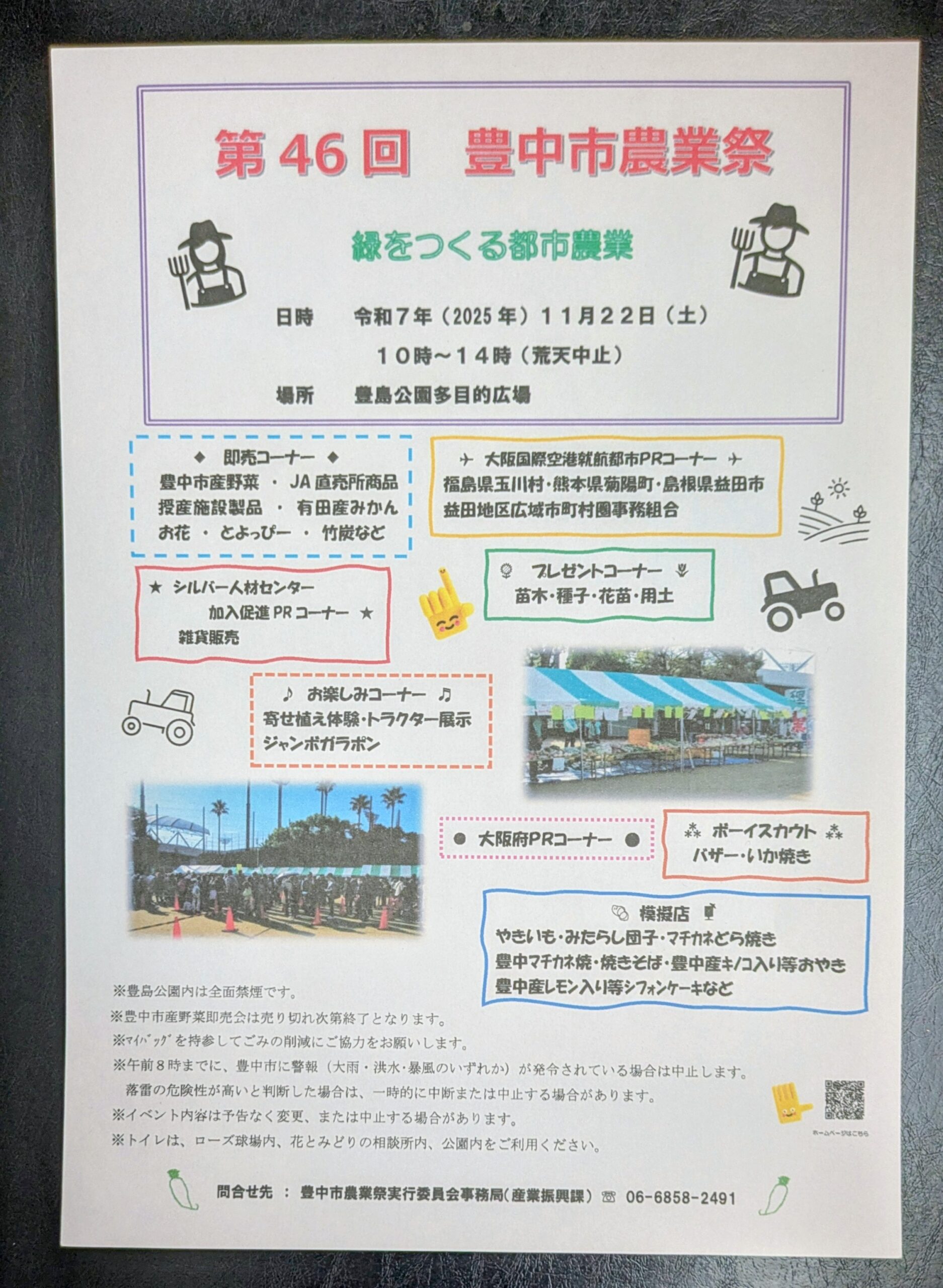 -豊中市-【豊島公園】で「豊中市農業祭」開催 即売のほか模擬店、プレゼントも実施 11月22日(土)
