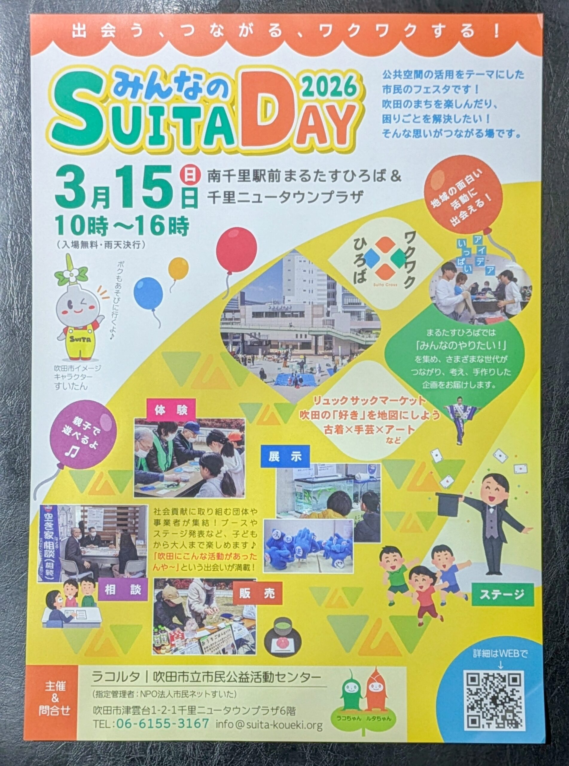 -吹田市-南千里で市民参加イベント「みんなのSUITA DAY」開催 販売・体験などのほか相談も 3月15日(日)
