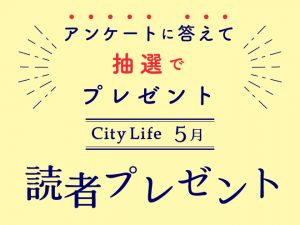 CityLifeに関するアンケートにお答えいただいた方の中から抽選で当たるプレゼントコーナー。 <今月のプレゼント>①今村翔吾著「幸村を討て」直筆サイン本5名②大人の女性向けメガネ「ココロト」2名(23,800円相当)③さくらサーカスA席無料招待券10名④カフェ&バイキング「シャガール」ペアランチ券2組(大人1名様:3,500円相当)⑤高槻活ふぐ専門店二代…
