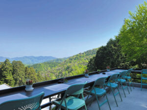 妙見山にある本瀧寺の鳥居をくぐり、長い階段を進むと荘厳な雰囲気が漂う本殿が現れる。その奥へと進むと雄大な自然を見下ろせるテラスが広がる「ほんたき寺巣」に辿りつく。こちらの名物は和風だしに6種類のスパイスを加えた「ほんたき薬膳カレー」。小麦粉不使用なので、さらりとした口当たりで程よい辛さが広がる。食感とコクをプラスする揚げ玉ねぎをトッピングするのがオススメだ。ライスは宇治の茶葉といっし…