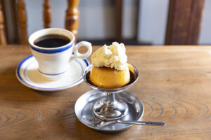 【写真のメニュー】プリン500円マトカブレンド500円 旅と古道具が好きな店主が一目惚れした、路地裏の一軒家で営むカフェ。「このカフェ自体が私にとって旅のようなもの」と語る店主が名付けた店名は、フィンランド語で「matka(旅)」。既存の梁や建具を生かして店主自ら内装を手掛けた空間に、さまざま…