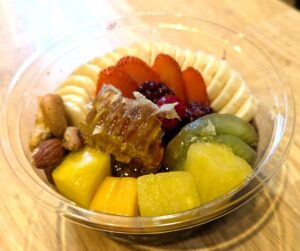 場所は、阪急ソシオの地下1F。店内はカウンターとテーブルがありました。美容健康食と言われているスーパーフードのアサイーボウルを中心にリゾートを感じさせる料理が沢山あるようです。メニューはこちら。「オリジナルアサイーボウル/Mサイズ1480円・Sサイズ1080円」「クラッキングチョコアサイーボウル/Mサイズ1580円・Sサイズ1180円」「グリークヨーグルトボウル/Mサイズ1580円・Sサイズ1…