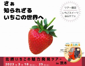 かつて府内有数のいちご産地であった北摂地域。なかでも特に茨木で近頃再びいちごが“アツい”ようだ。茨木市では、市内の隠れた魅力に迫る体験型ツアーである「魅力発見ツアー」を開催しているが、今回のテーマは“北摂いちご”。茨木市内のいちご農園で、品種の違いによるいちごの特徴などを学びながらの摘み取りを体験。その後、「ダムパークいばきた」予定地を見学し、各自で山カフェにてランチ(いちごスイーツ付き)を堪能…
