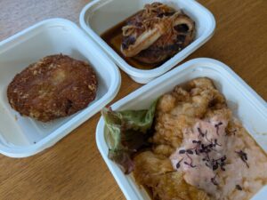 場所は「ダイエー桜井駅前店」の近く。大阪市内にある、5つ星ホテルで料理長をされていた店主さんが、定番メニューだけでなく洋食、和食、中華、アジアン、ジャンルの垣根を超えた創作料理が取り揃えているそうです☆店内は、お弁当やおそうざいサラダもありました。この日は12時過ぎに行ったのですが売り切れてるのも多々あって、開店と同時に行けばよかったと後悔。。今回は「鶏もも肉のチキン南蛮梅肉タルタルソース…