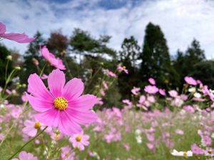 自然豊かな豊能町で、花の愛好家らにより始まった「とよのコスモスの里」。コスモスが満開を迎え、見ごろとなっている。約1haの敷地一面には約100万本が咲き揃い、赤や桃色の色鮮やかな風景が広がる。中の遊歩道を歩けば、大人の背丈ほどあるコスモスにすっぽりと包まれるほど。園内の松林には軽食や手作り雑貨のお店もあり、家族みんなで楽しめる。入口の売店ではお土産にも喜ばれるコスモスの切り花も販売。見頃は例年1…