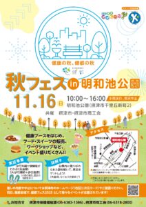 摂津市の明和池公園で毎年秋に開催される恒例イベント「秋フェスin明和池公園」。今年は11月16日(日)に開催される。このフェスは、北大阪健康医療都市「健都」エリア全体で行われる「健都フェス2025」と同日開催されるのが特徴だ。摂津市と摂津市商工会が共催する本イベントでは、「健康の秋、健都の秋」をテーマに、健康ブース、フード・スイーツの販売、ワークショップなど、子どもから大人まで楽しめる企画が多数…