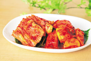 【写真のメニュー】山芋150円/100g(400gから購入可)白菜120円/100g(300gから購入可) 干し椎茸や干し海老などだしが出る素材とにんにくやしょうが、果物など10種類以上の素材を組み合わせて作るヤンニョンで漬けた手作りのキムチが評判。中でも一番人気はシャキシャキの食感がクセになる山芋。唐辛子の辛さとだしの旨み、フルーティな甘さのバランスが絶妙で、ついつい食べ進…