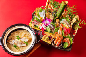 【写真のメニュー】(画像右)磯盛り1人前1485円(画像左)天然のど黒土鍋めし1人前1738円※どちらも注文は2人前から日本各地の漁港から朝獲れの鮮魚を直送や直買いして仕入れた旬の魚介類が自慢。名物の「天然のど黒土鍋めし」は、高級魚として知られるのど黒と厳選した米をこだわりの天然塩で調味。のど黒の旨みを含んだご飯は絶品で、まさに店の看板メニューだ。季節の海鮮を8種類盛り込…
