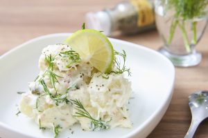 ポテトサラダと言えばお馴染みの料理だが、ハーブをプラスすることで上品な一品に変身する。ディルは爽やかな香りが特徴のハーブで、魚介類やマヨネーズとの相性が抜群。 「魚介類との相性がいいケッパーを刻んだものも入れると、蟹缶のうま味をさらに際立たちますよ」。