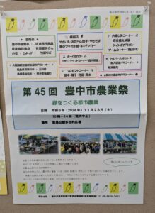 11月23日に豊島公園の多目的広場で「第45回豊中市農業祭」が開催される。豊中市農業委員会が中心になって毎年11月中旬に開催されているイベントで、市内の農業者によって育てられた新鮮な野菜が揃う。土壌改良材「とよっぴー」も瞬く間に売り切れるという人気イベント。即売のほか、やきいもやみたらし団子の模擬店や先着100名のジャンボガラポンなどのゲームコーナーのほか苗木・用土などのプレゼントコーナーも…
