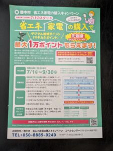 豊中市は、7月1日(月)~9月30日(月)の期間中、豊中市内の実店舗(オンラインショップは除く)において省エネ家電製品購入でマチカネポイント(デジタル地域ポイント)を付与する。2050年までに二酸化炭素の排出量を実質ゼロにするゼロカーボンシティの実現に向け、家庭における省エネの取り組みを支援するという。対象家電製品は令和6年(2024年)7月1日(月曜)以降に購入した冷蔵庫・テレビ・エアコンの…