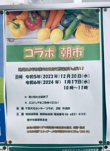 千里中央にある千里文化センター「コラボ」で、月1回、第3水曜日に「とよなか産野菜の朝市」が開催さている。今月は12月20日(水)で来月は6年1月17日(水)。“とよなか産のとれたて野菜”が、豊中市内の農業事業者の協力を得て新鮮な野菜が並ぶ。安心安全な食の実現を目指す「地産地消」を推進して、市民交流の場づくりと千里地域の賑わいづくりの機会として実施。1時間限定の「売り切れ御免」の即売…