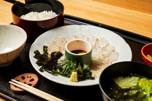 【写真のメニュー】宇和島風鯛めし1,400円※ご飯、にゅうめん、小鉢、香の物付き和食の職人として腕をふるう店主が考案した、ランチ限定の人気メニュー。愛媛県宇和島の漁師めしとして親しまれる「鯛めし」をアレンジしたもので、煮切ったみりんやしょうゆなどを合わせた自家製ダレに卵黄を混ぜ、鮮度のいい真鯛を薬味とともに味わう。店内はカウンター席のみの割烹スタイルで、落ち着いた雰囲気の中で…