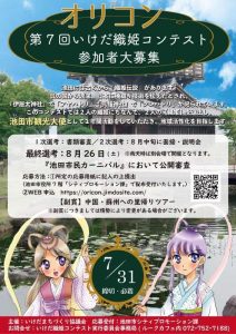 (画像は池田市HPから)現在池田市では『第7回いけだ織姫コンテスト』に向けて参加者を募集している。池田市には古くから伝えられている「織姫伝説」があり、呉の国から日本に機織り技術を伝えたとされ、『伊居太神社』で「アヤハトリ」、『呉服神社』で「クレハトリ」が祀られている。このコンテストでは2人の織姫にちなんで、1年間池田市観光大使として活動する「クレハトリ」と「アヤハトリ」の2人の織姫を選出する…
