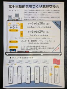 北千里駅前の再整備については、市が策定した「北千里駅周辺活性化ビジョン」の具現化に向け、民間(組合)施行の市街地再開発事業として、取組を進めている。そこで、これまでの取組についての説明とともに、地域住民と将来の北千里駅前について考えるための意見交換会を実施している。前回まで、地域住民の皆様と将来の北千里駅前について考えるための意見交換会を5回実施し、そこで出た意見やアイデアをまちの利用風景イメ…