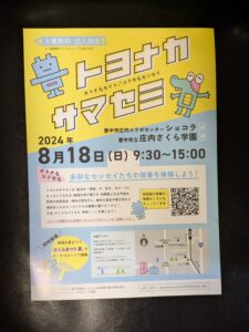 豊中市庄内コラボセンターで「トヨナカサマセミ」が8月18日(日)に開催される。自分の「得意」や「好き」をテーマに地元の人たちがセンセイになる、地域の学び場だ。初開催となる今回は、「さあ、オトナもコドモも、学校ごっこを楽しもう!」をコンセプトに、学校の校長先生、神社の宮司、地元の店主や音大生など個性あふれるセンセイたちの授業が多数用意されている。事前申し込みは不要で出入りは自由なので、気に入っ…