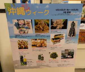 千里阪急で「沖縄ウィーク」が開催中でしたよ~ 場所はこちら。千里阪急5階の催事コーナーです。 さんぴん茶や紅芋タルトなどの定番商品から ノニジュースやウコンなどの健康アイテムもズラリ。 &…