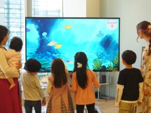 自分が描いたぬりえの生き物が大画面で泳ぎ出す!