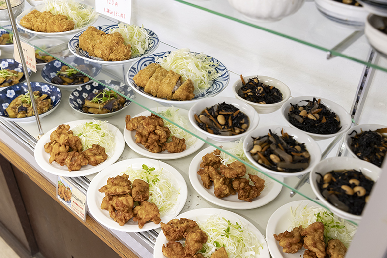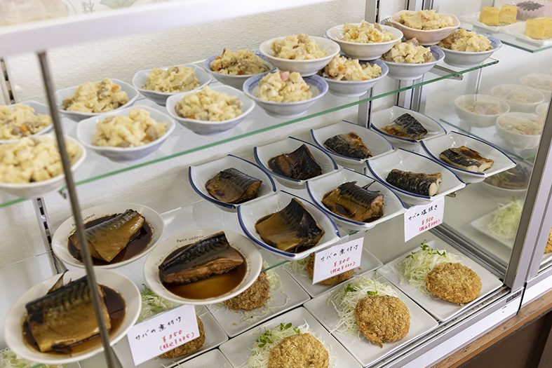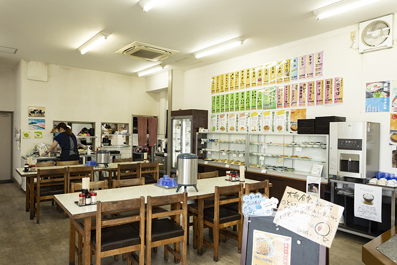 茨木で50年以上続く、家族経営の老舗食堂。現在は、二代目夫婦と初代女将が一緒に店を切り盛りする。壁に貼られたお品書きには、生姜焼き定食、野菜炒め定食など定番の定食のほか、親子丼やカレーなどの単品も。店内のショーケースには、サバの塩焼き、サンマの甘露煮、麻婆茄子、ひじき、おからなど、日替わりの惣菜や小鉢がずらりと並ぶ。名物「サバの煮付け」は、先代から継ぎ足しで使われている煮汁で炊かれた味わい深い一品。近くの中央卸北部市場で仕入れる国産の野菜と旬の魚を使い、家族で守る店の味は、心温まる極上の「おふくろの味」だ。当日店頭に並ぶメニューは、毎日インスタグラムで発信中。