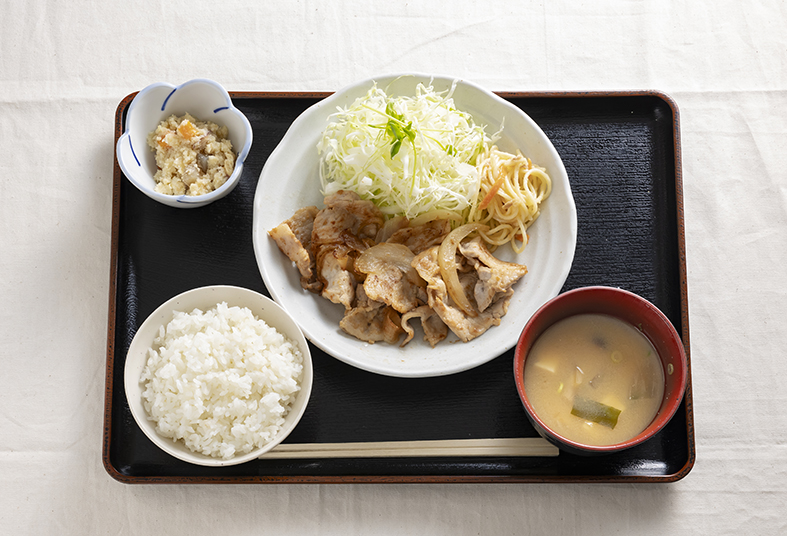 生姜焼き定食(ごはん、味噌汁、小鉢付き) 957円