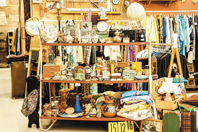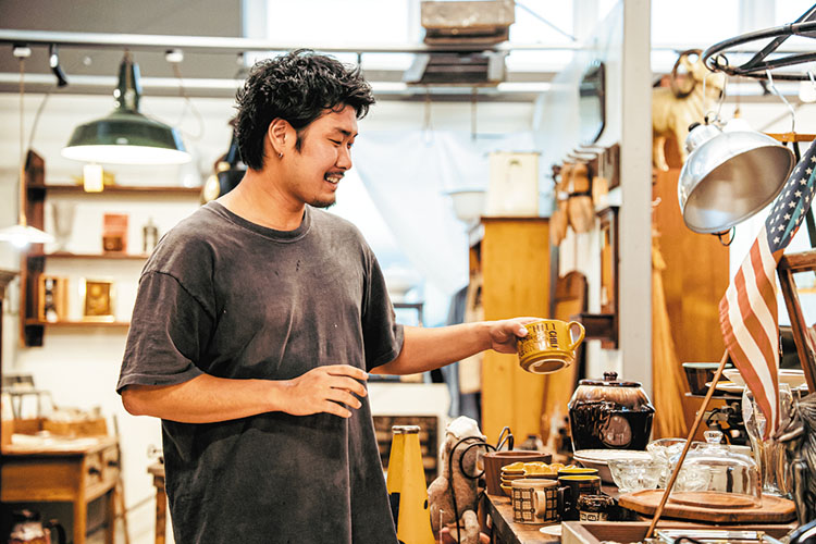 「海外ではよく見かける業態なんですが、国籍や年代、テイストなど、店舗によって表現が違います。うちでは19通りのアンティークを楽しんでいただけます」とスタッフの別所さんが話すとおり、温かみのあるカントリー調からインダストリアルなインテリアや食器、ミリタリーの古着、ラグに革靴まで、幅広いラインナップ。