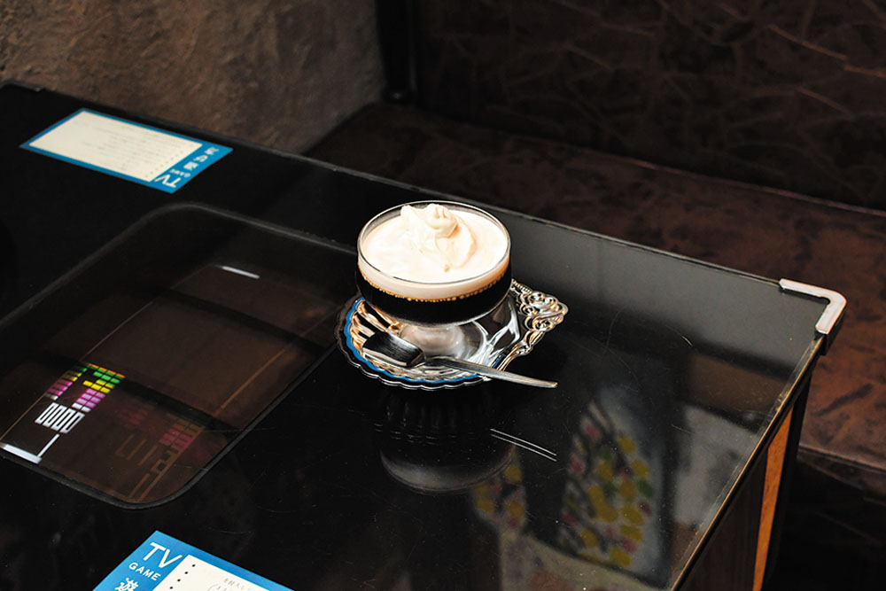 長年純喫茶巡りを趣味としてきた、オーナーの愛情を形にした純喫茶。テーブルゲームや銅板のテーブルなどの家具は、惜しまれつつも閉店した喫茶店から譲り受けたもの。看板メニューは、かつて茨木にあった「珈琲専門店nakao」のレシピを受け継いだコーヒーゼリー(650円)。「本物しか残らない。本物を作りなさい」と、想いごと受け継いだ特別な一品である。