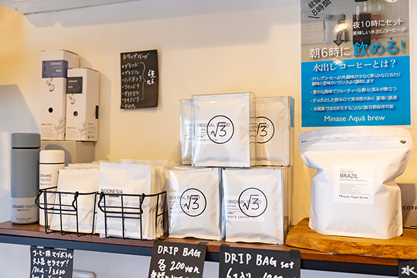 島本・水無瀬をこよなく愛する店主が町の人々と交流できる拠点になれば、と2年前に開店。コーヒーの鮮度と品質を重視し、店内の焙煎機で自家焙煎した豆を、淹れる直前にミルで挽くので香り高い一杯が楽しめる。朝は7時半からオープンしているので出勤前にテイクアウトする人も多い。豆のラインナップは、スペシャリティコーヒーにも力を入れており、希少性の高いものも扱っている。水無瀬神宮の離宮の水を使った水出しアイスコーヒーも人気。