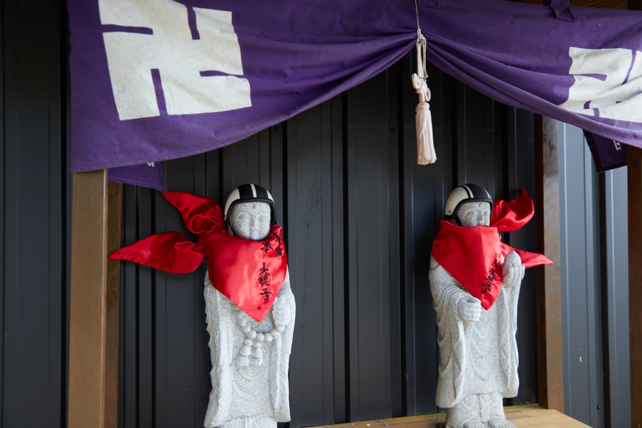 1300年前から霊験あらたかな修行場(滝業)として広く知られ、今もなお修行する人が絶えない。本堂は総檜造りで、約100年前に創建されたそう。寺の敷地内には立派な杉や楓の木々などがあり、季節の移ろいとともにさまざまな色合いに変化し、荘厳な空気を醸し出している。そんな「本瀧寺」だが、いつの頃からか「バイク寺」と呼ばれるようになっている。副住職の野間さんの趣味がバイクに乗ることだったということもあり、いつしか全国のライダーが自然と集まるように。「バイク寺」として広く認知され、ライダーのための安全祈祷などを行ったりもしている。また、寺を訪れた人の休憩スポットとして「ほんたき寺巣」なるカフェもあり、こだわりのカレーが大人気。