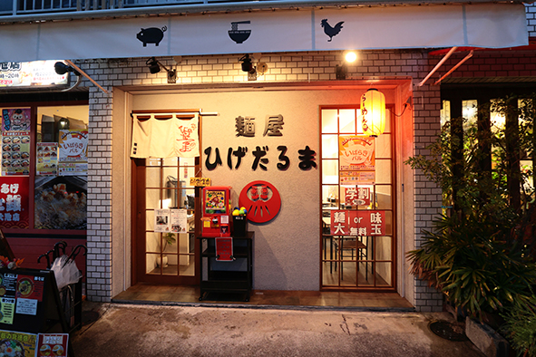 つけ麺通の間で知られる西中島の名店「時屋」(ときや)から独立を果たした実力派の店主が営む、麺屋ひげだるま。「おいしいラーメン、つけ麺だけでなく、また来たいと思えるエンターテインメント性抜群の店に」という想いのもと、茨木市大池にて開業。現在、ラーメンはさらなるブラッシュアップ中のため、シティライフでおすすめするのはつけ麺だ。