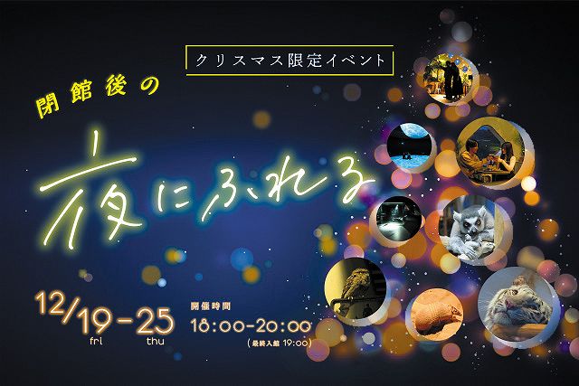 クリスマス限定イベント・閉館後の「夜にふれる」を開催 開催期間:12月19日(金)~25日(木) 開催日時:18時~20時(19時最終入館) 閉館後の夜のニフレルでは、光がゆらめく水槽が浮かび上がり、昼間とは違う生きものたちの表情や仕草、気配を間近で感じられる特別な体験ができます。巨大アート空間「ワンダーモーメンツ」では、球体とフロアに映し出される美しいアートとオレンジの香りに包まれ、カフェでは夜限定のスぺシャルスイーツも楽しめます。いつもと違う夜の世界で、特別なクリスマスを体験してみて。