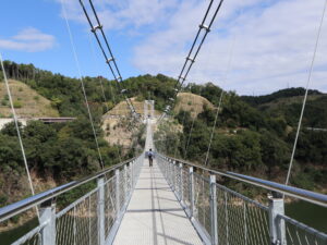 お昼に見山の郷のお弁当をいただいたあとは、安威川ダムに架かる全長420メートルの吊り橋を渡りました。