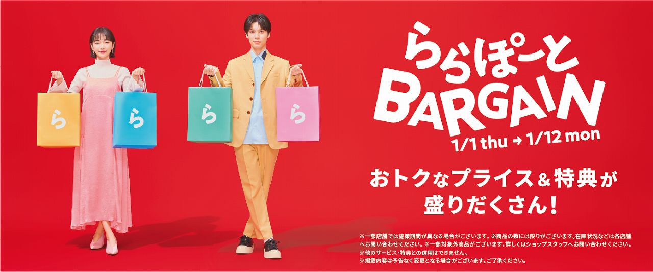 2026/1/1(元日)~12(月・祝)の期間「ららぽーとBARGAIN」が開催されます。 おトクなプライス&特典が盛りだくさん!
