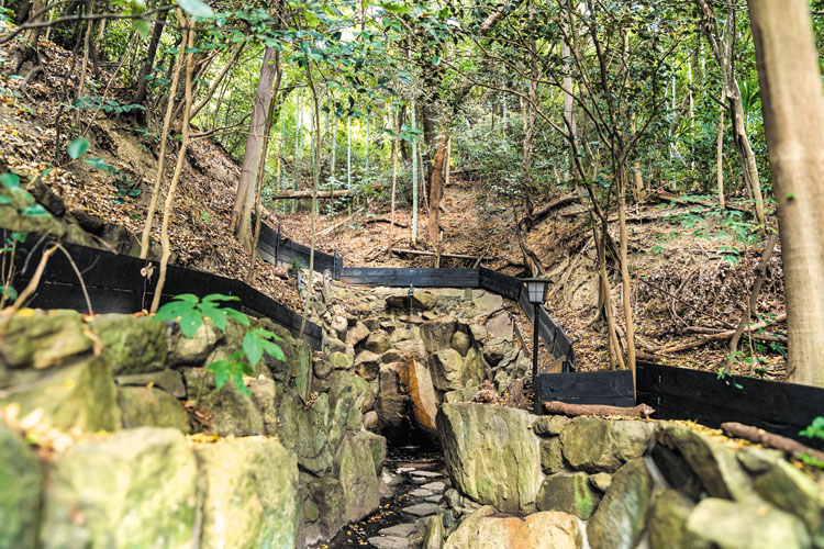 万葉集に詠まれた垂水の滝を守り伝え、古くより「水の神」を祀る社として崇敬されてきた。孝徳天皇の時代、干ばつに見舞われた際には、この地の湧水を難波宮へ届けたという伝承も残る。境内には今も水脈が息づき、御神水として参拝者に親しまれている。また、広大な「鎮守の森」は、保安林に指定され、訪れる人々を静かに迎えてくれる。