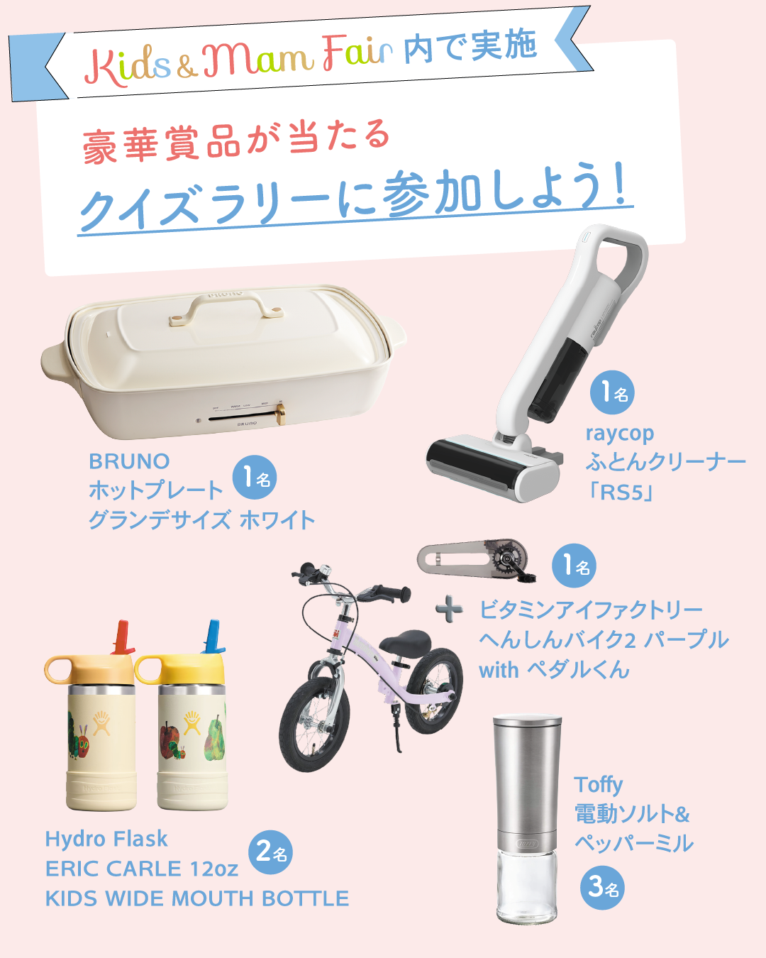 【Kids&mam Fair内で実施 豪華賞品が当たるクイズラリーに参加しよう】お1人様1回