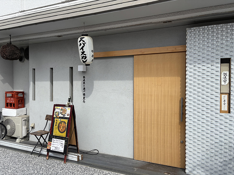 天然の魚のみを扱う熟成魚と酒の居酒屋「春夏冬」が土曜の昼だけスパイスカレーの店「旬香唐」に。4月限定で提供されるのはムール貝や甘エビ、渡りガニなどの甲殻類から取った出汁をベースに、煙が出るまでじっくり焙煎したスパイスを使った「大阪出汁ブラック」。具材も豊富でカレーと魚介の相性の良さに驚く。仕入れ次第で登場するトッピング(追加料金要)は前日にインスタでチェックしよう。