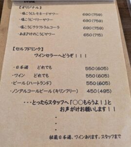 旨味と健康効果に優れた「糀」と、添加物をできるだけ控えた食材を使用した、健康的な創作料理が味わえるそうです(^^♪店内はカウンターとテーブル席がありました。テーブルは予約をしていた方が良さそうです。