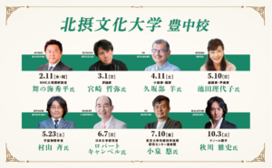 北摂文化大学/堺文化大学/神戸文化大学(2026年度より開校)は、政治、経済、社会、科学、医療、文化などさまざまな分野における専門の講師をお招きし、受講者の皆さまの知識をさらに深めていただくことを目的として、2023年から開校しています。