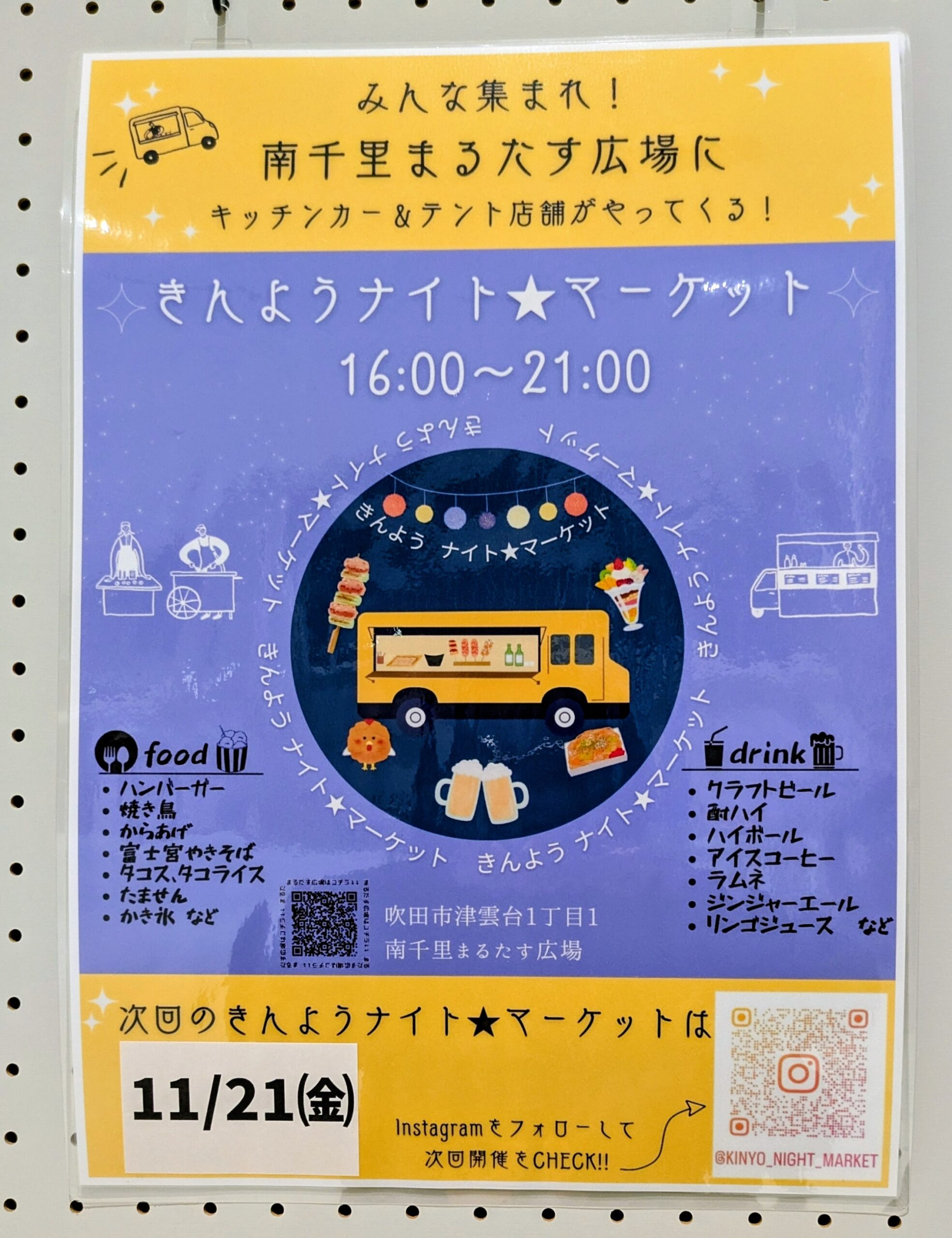 -吹田市-【まるたす広場】で年内最後の「きんようナイト★マーケット」開催 グルメ大集合 11月21日(金)