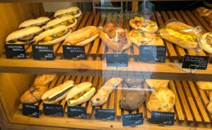 地産地消に力を入れていて、店内のパンは全て無農薬及び減農薬野菜を使用しているそうです。野菜は茨木産の、玉ねぎ、トマト、ミニトマト、にんじん、とうもろこし、ピーマン、万願寺、水なす、じゃがいも、ズッキーニ、大葉、赤しそ。鶏肉は清水養鶏所、米粉は水尾産、みそは見山竜王みそ。小麦粉は北海道産、兵庫県産、福岡県産、北米産、全粒粉は福岡県八女産。