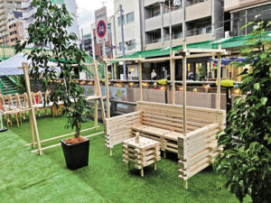 立命館大学BKC阿部研究室が制作したストリートファニチャー(nomadogi)は、実際にナイトバルでも利用された。