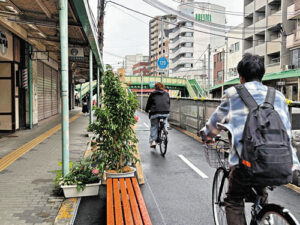 自転車道を確保した。ナイトバル開催時は自転車には歩道を押して歩いてもらうようにした。
