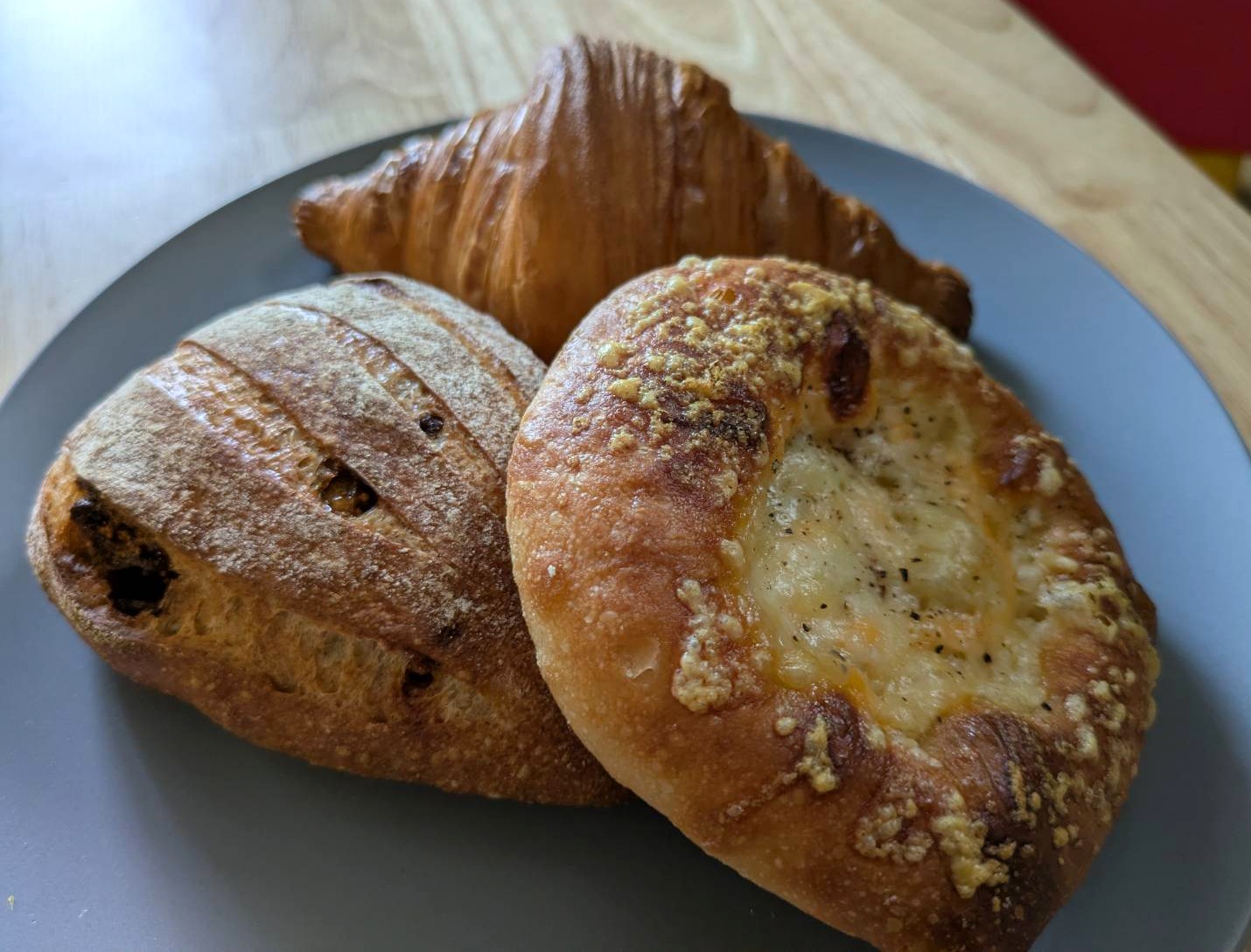 今回は、「クロワッサン/320円」「5種のチーズ/350円」「イチジクのカンパーニュ/480円」をチョイスしました。