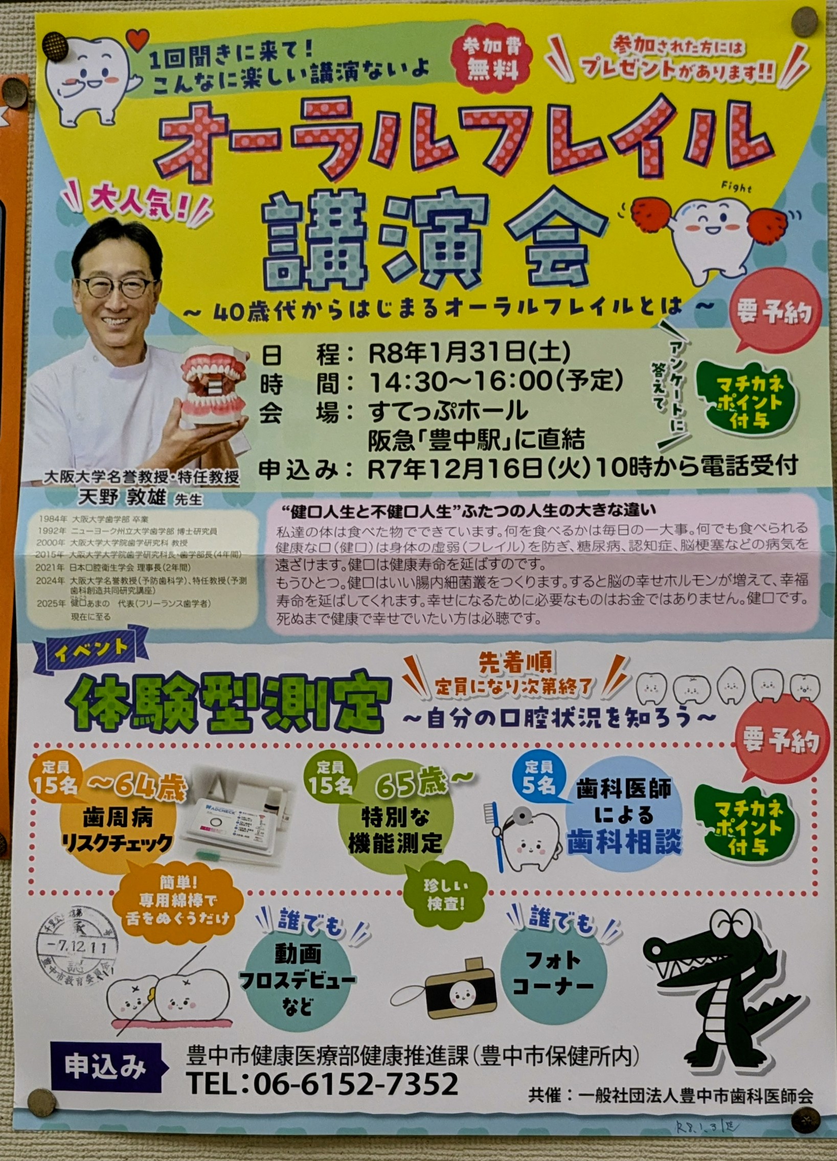 2026年1月31日(土)にすてっぷホールで「オーラルフレイル講演会~40歳代からはじまるオーラルフレイルとは~」が開催される。