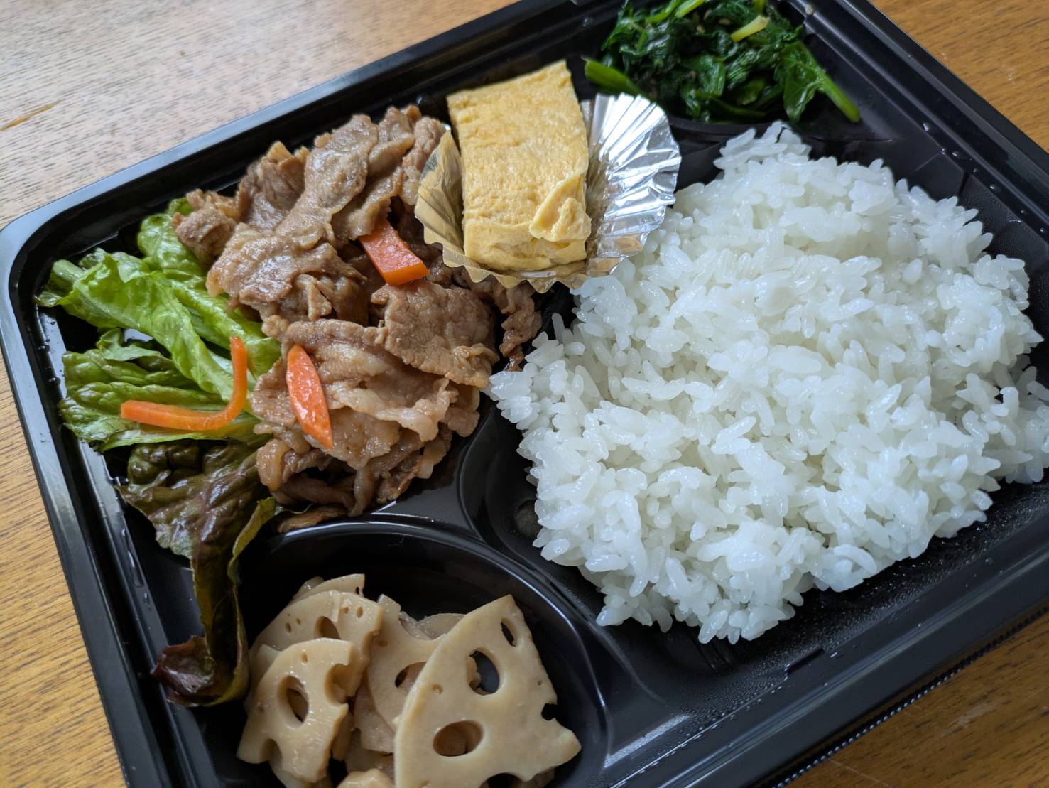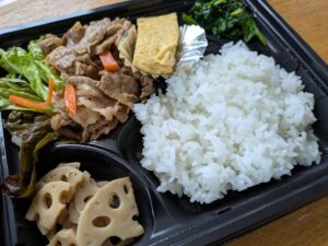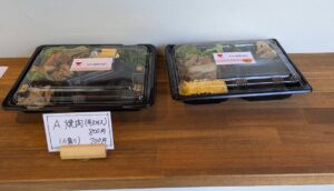 この日は、魚のお弁当が完売で、「焼肉(牛スライス)/800円・小盛り700円」だけしか残ってませんでした。