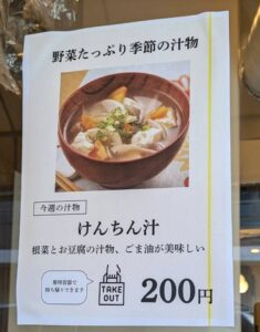 「野菜たっぷり季節の汁物/200円」もテイクアウト出来るそうなので、バランスの取れたご飯が食べれます。是非行ってみて下さい☆