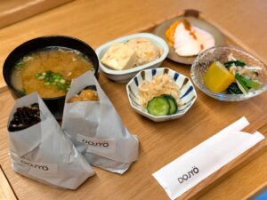 おばんざい3種、豚汁、自家製お漬物が付いてきます。お米が美味しくて、海苔と具のバランスが絶妙!おにぎりの具では肉味噌が大好きなのですが、ゆずが入ってるだけでまた一段と美味◎おばんざいも優しい味付けで大満足でした。おにぎりのテイクアウトもあって、海外の方が購入されてました。子どもを連れて、箕面の山で食べるのもいいな~♪是非行ってみて下さい。