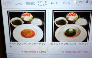 「デミグラスソースハンバーグランチ/1000円」「おろしそポン酢ハンバーグランチ/1000円」。