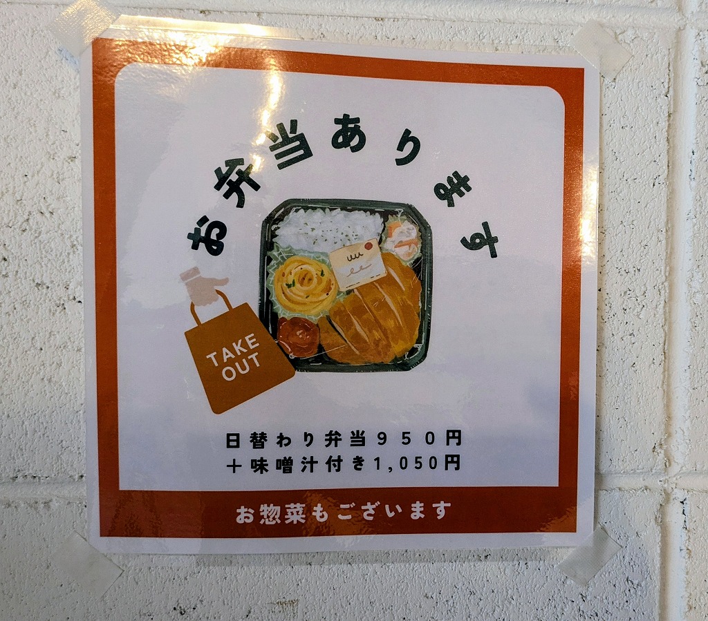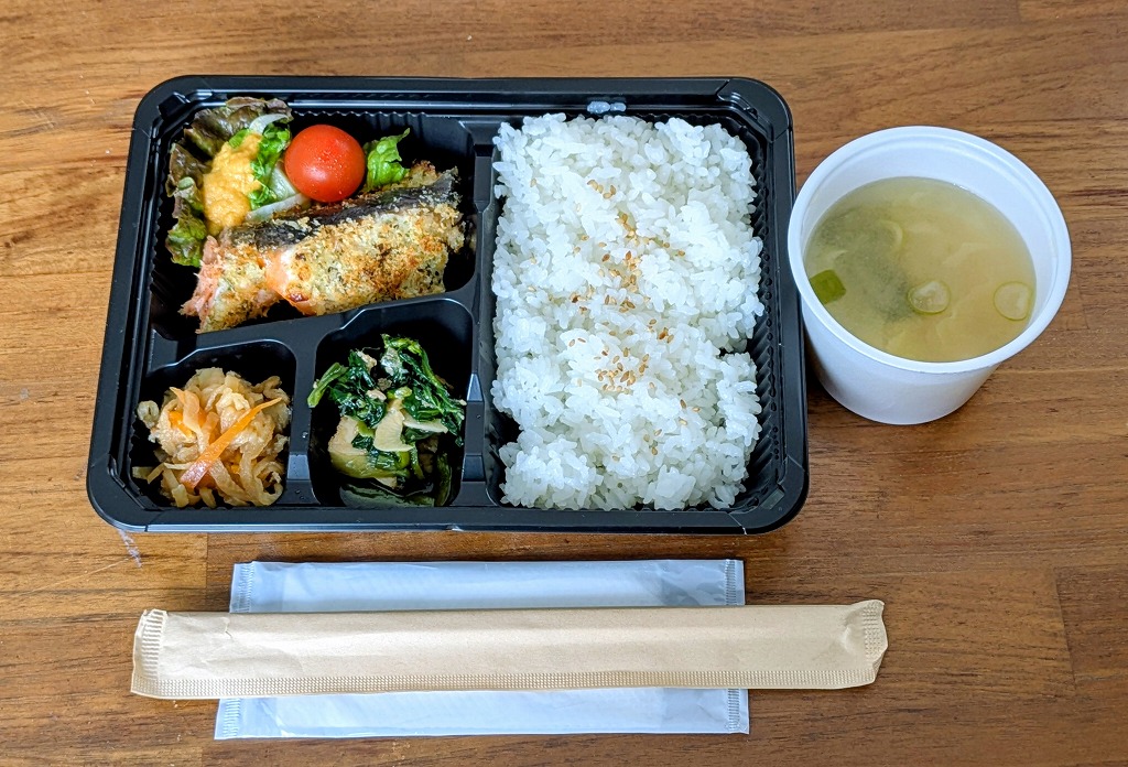 筆者は「お弁当(950円/税込/お味噌汁付き:1,050円)」を購入。