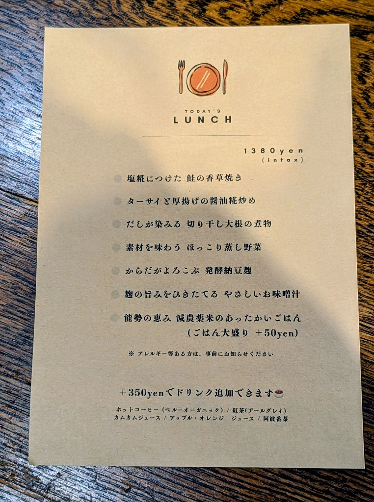 ランチにはプラス350円でドリンクが付きます。