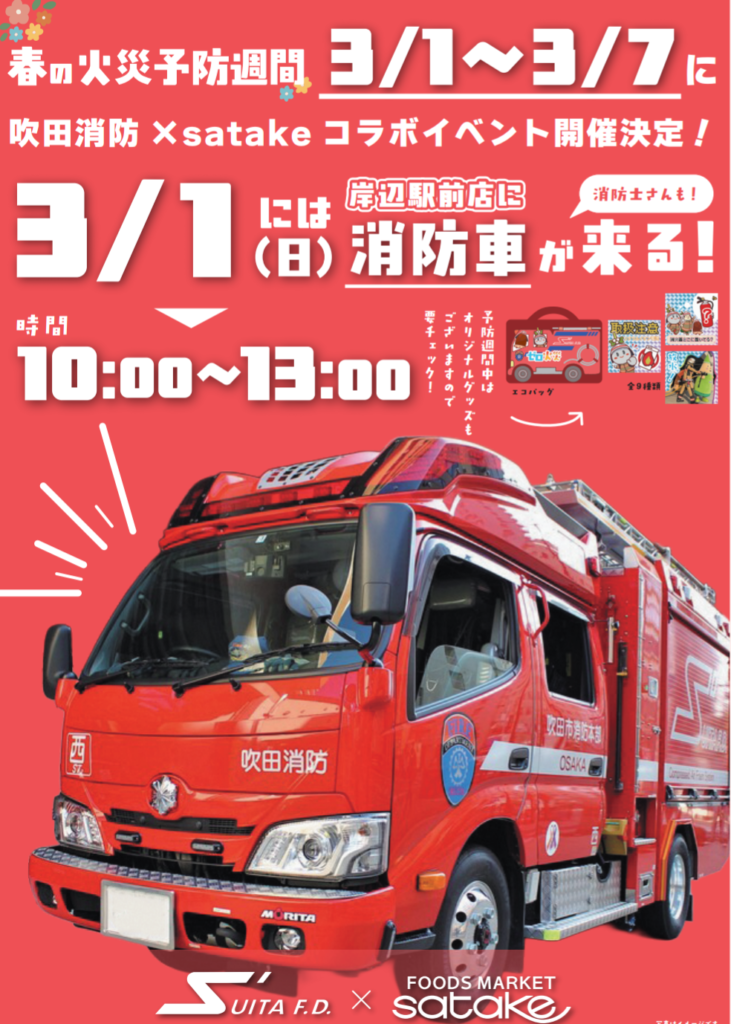 -吹田市-北摂で初の試み 消防とスーパーがコラボし火災予防イベントを開催 先着プレゼントも実施 3月1日(日)から